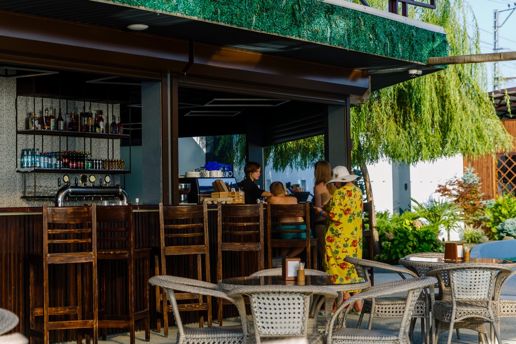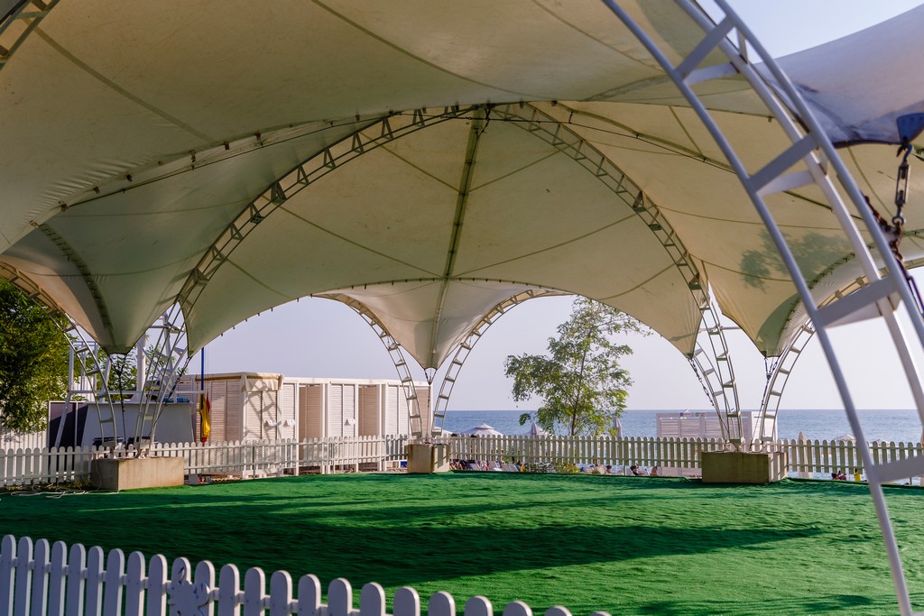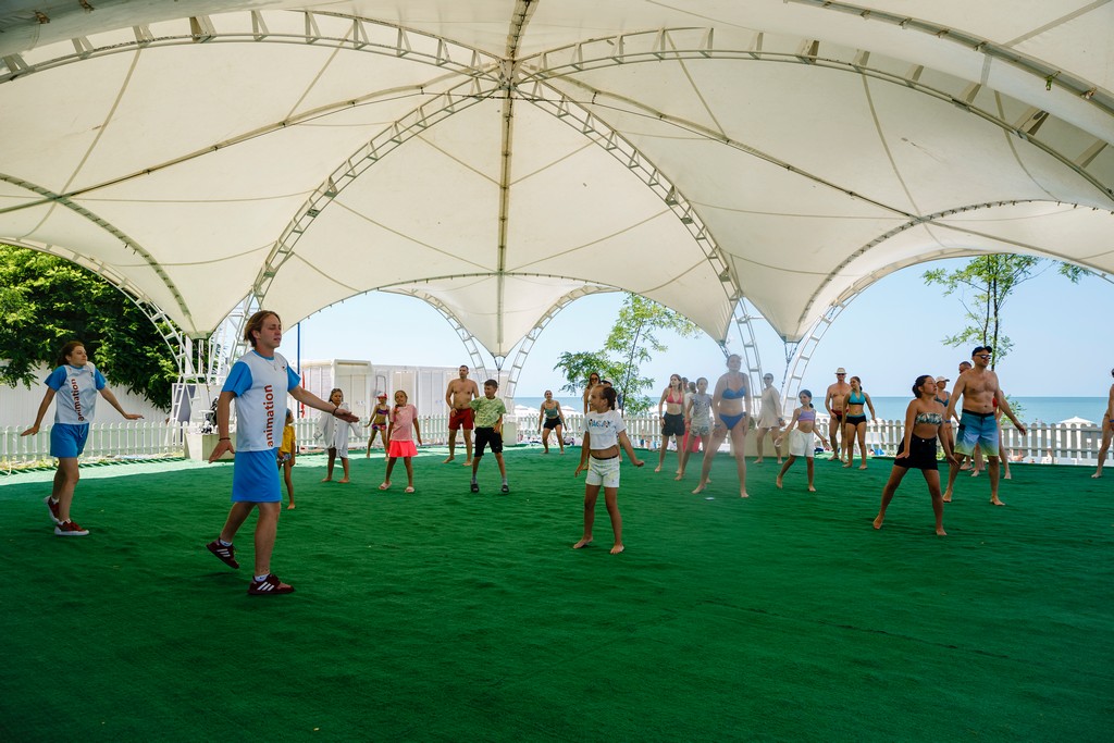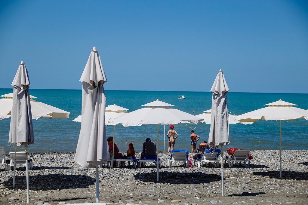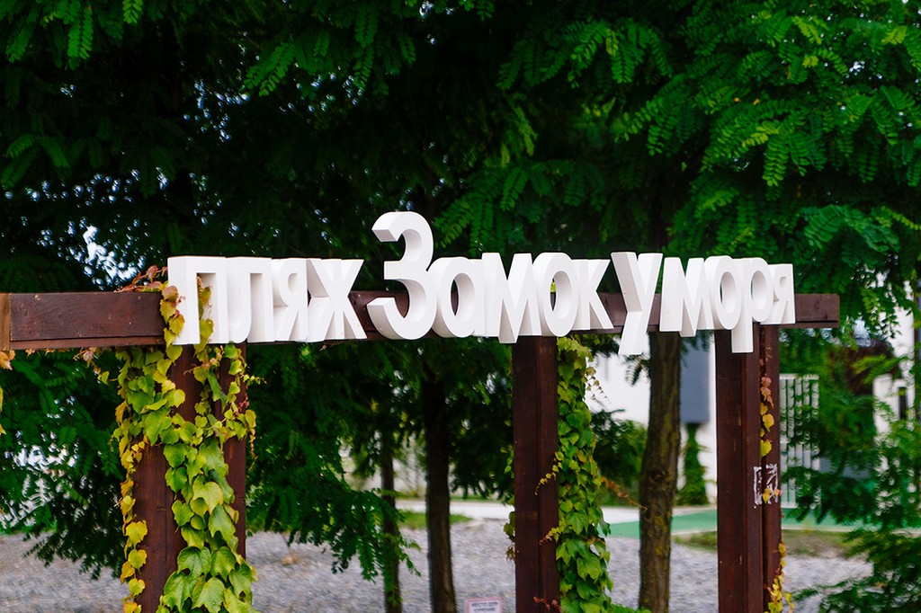 Пляжная зона «Замка у моря» облагорожена. Здесь можно комфортно загорать под зонтом на шезлонге. Для вашего комфорта душ с пресной водой, можно освежиться после соленой морской воды. Вдоль пляжной зоны настелены деревянные дорожки, кабинки для переодевания и туалетные комнаты.