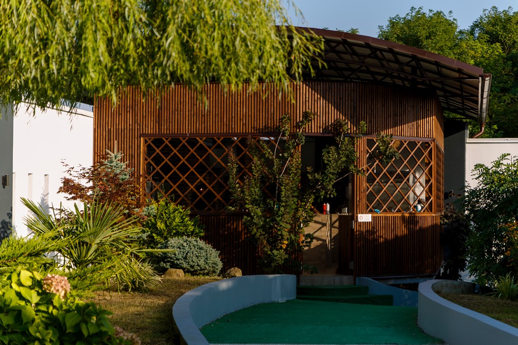 Все сочинские пляжи проходят вдоль железнодорожных путей. Руководство гостевого дома «Замок у моря» решило этот вопрос, построив широкий парапет вплоть до самих путей, что позволяет людям с колясками прекрасно пересечь ж/д пути, не поднимаясь и спускаясь по многочисленным ступенькам.